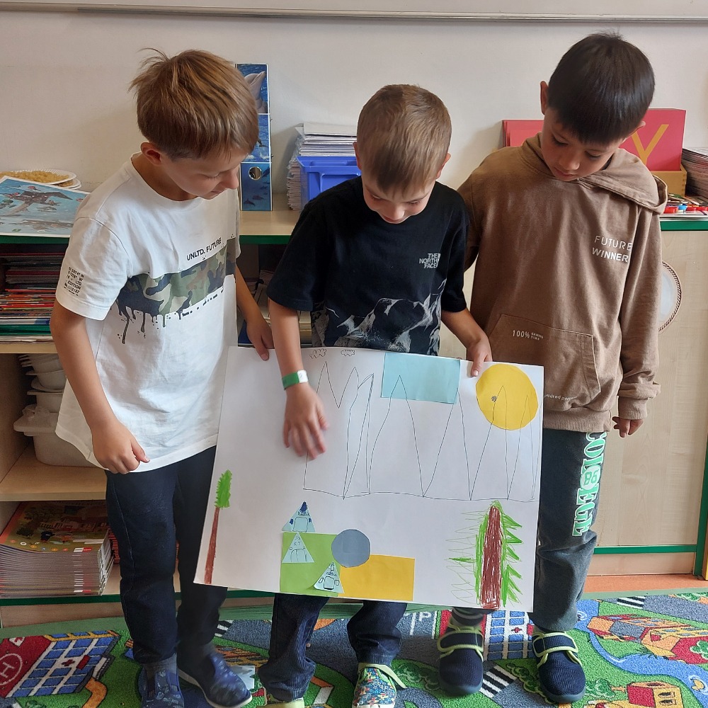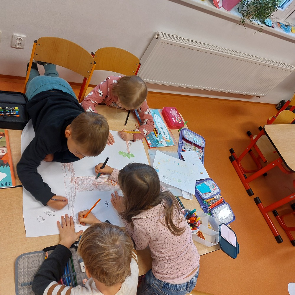 Září pro prvňáčky bylo velmi pestré. Poznávali se s novými spolužáky, trénovali hrubou i jemnou motoriku, hláskovali slova, začali se učit první písmena a slabiky. Vyzkoušeli si pracovat ve skupinách. Poslední týden v září úspěšně zvládli svá první centra aktivit. Během čtyř dnů se všichni vystřídali ve čtyřech centrech a udělali velký kus práce.